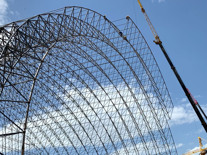 (2)网架加工前应对现场尺寸进行复测,确认无误后方可进行加工、安装;网架制作、运输、安装应遵守《空间网格结构技术规程》JGJ7-2010、《钢网架忻州螺栓球节点》JG/T 10-2009、《钢网架忻州螺栓球节点用高强度螺栓》 GB/T 16939-2016、《忻州钢结构忻州工程忻州施工规范》 GB50755-2012、《忻州钢结构忻州工程施工质量验收标准》 GB50205-2020。